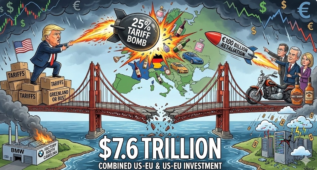美·EU 상호 투자액만 7.6조 달러... "싸우면 둘 다 죽는 공멸(共滅) 시나리오"