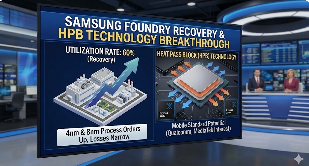 이미지 확대보기디지타임스는 20일(현지시각) 삼성전자 파운드리 가동률이 올해 상반기 평균 60% 초반대에 이를 것이라고 보도했다. 이는 50% 수준에 머물렀던 지난해 하반기와 비교해 10%포인트 이상 상승한 수치다. 또한, 미국 IT 매체 Wccf테크는 같은 날 삼성의 엑시노스 2600에 적용된 HPB 기술이 안드로이드 진영의 새로운 발열 설계 표준이 될 수 있다고 분석했다.