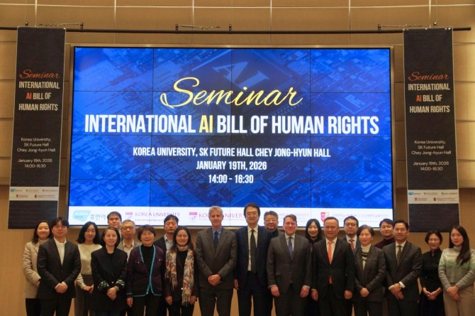 이미지 확대보기사단법인 휴먼아시아(대표 서창록)와 고려대학교는 지난 1월 19일, 고려대학교 SK미래관에서 ‘국제 AI 인권장전 세미나(International AI Bill of Human Rights Seminar)’를 성공적으로 개최했다고 밝혔다.