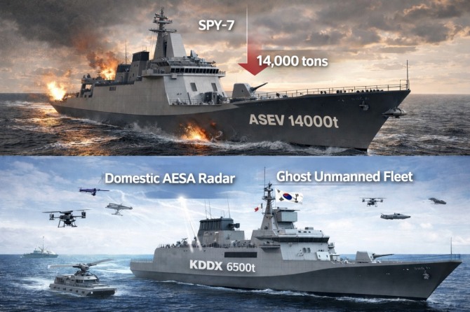 韓 KDDX는 국산 AESA·전투체계로 '유연성·가성비' 확보…무인함대 지휘 능력도 한 수 위