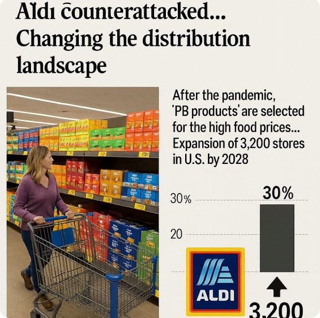현재 알디의 매장 수는 약 2800개로 미국 최대 유통사인 월마트(슈퍼센터 3500개)를 맹추격 중이다. 성장세도 가파르다. 지난해 매출은 전년 대비 14% 증가한 541억6000만 달러(약 78조8190억 원)를 기록했다. 시장 조사기관 플레이서에이아이(Placer.ai)에 따르면, 지난해 4분기 알디의 방문객 수는 9.7% 급증하며 기존 강자인 크로거(2.4%)와 앨버트슨(3.4%)을 압도했다. 길렌스 교수는 “알디가 월마트 인근을 최적의 입지로 낙점할 만큼 공격적인 확장에 나서고 있어 기존 시장에 파괴적인 영향력을 미칠 것”이라고 전망했다.