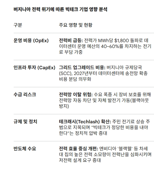 미 월가 에너지 분석가들은 "데이터센터 밀집 지역일수록 기후 변화에 따른 전력가격 변동성이 극심해지는 구조적 취약성을 안고 있다"며 "전력망 확충 속도가 AI 수요 증가 속도를 따라가지 못하는 상황이 지속될 것"이라고 지적했다.