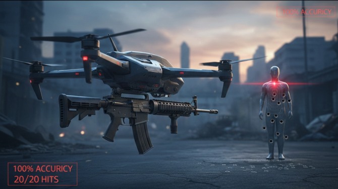 최근 '총기 발사 및 제어 저널(Journal of Gun Launch and Control)'에 게재된 연구에 따르면, 중국 육군 특수작전사관학교와 우한 가이드 적외선(Wuhan Guide Infrared) 연구팀은 실사격 시험에서 경이로운 성적을 거뒀다. 지상 10m 상공에서 정지 비행 중인 드론이 100m 떨어진 인체 실루엣 표적을 향해 20발을 사격한 결과, 모든 탄환이 표적에 명중했다.