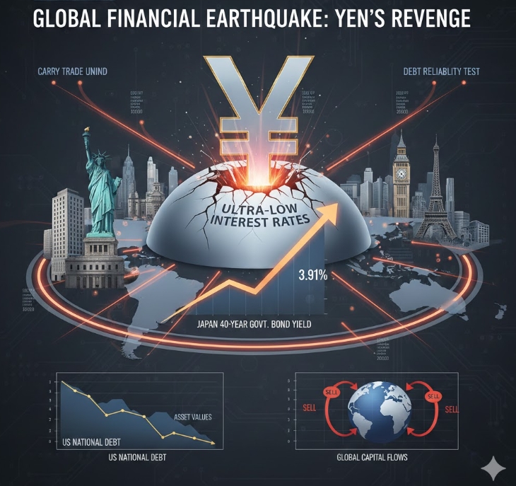 이미지 확대보기악시오스는 26일(현지시간) 일본 채권 시장의 급격한 변동성이 단순한 시장의 추측을 넘어 전 세계 자산 가치 하락과 금리 상승을 초래할 '시스템적 사건'이 될 것이라고 보도했다. 초저금리를 기반으로 해외 자산을 사들이던 일본 자본이 본국으로 회귀(리패트리에이션)를 시작하면서 미국 등 주요국 금융 시장의 안전판이 무너질 수 있다는 분석이다.