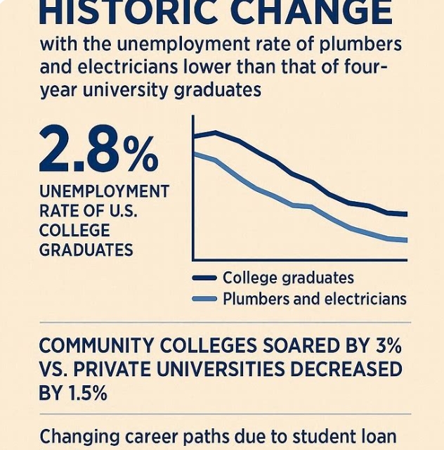배관공·전기기사 실업률이 4년제 대학 졸업자보다 낮은 '역사적 이변'