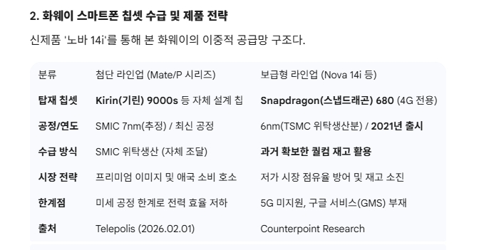 첨단 기술을 향한 질주 이면에는 구형 부품 재고 처리에 급급한 중국 IT의 어두운 단면도 존재한다. 독일 매체 텔레폴리스(Telepolis)는 지난 1일 화웨이가 중국과 홍콩 시장에 출시한 신형 스마트폰 ‘노바 14i’가 사실상 6년 전 발표된 퀄컴의 스냅드래곤 680 칩을 탑재한 ‘재탕 모델’이라고 지적했다.