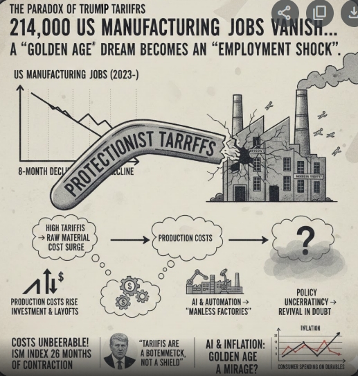 고율 관세가 원자재 가격 폭등 초발 → 생산 단가 상승 → 기업 투자 위축 및 감원 악순환
