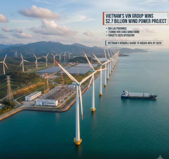 지난 4일(현지시각) 베트남 현지 매체 카페에프의 보도에 따르면 자라이성 인민위원회는 빈그룹 계열 빈에너지(VINENERGO)를 혼짜우 풍력발전소 1단계 프로젝트 사업자로 선정했다고 밝혔다