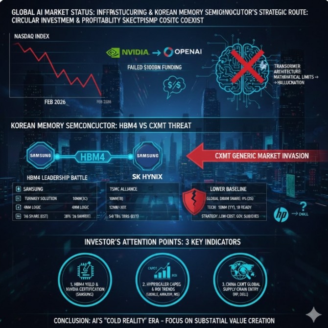 이는 반도체 기업이 자금을 대고, 그 돈이 다시 자사 제품 구매로 돌아오며 실적을 떠받치던 구조가 한계에 다다랐음을 의미한다. 실제로 구글 모회사 알파벳이 연간 최대 1850억 달러(약 271조 원)라는 전무후무한 투자를 예고했음에도 불구하고, 나스닥 지수는 이달 초 이틀 연속 급락했다. 시장은 이제 '투자의 양'이 아닌 '수익의 질'을 요구하고 있다.