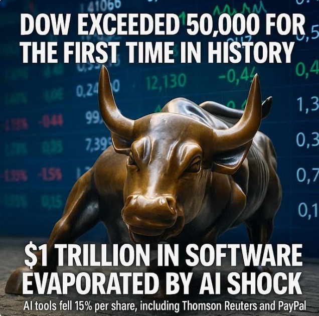 다우 사상 첫 5만 돌파…AI 충격에 소프트웨어 1조 달러 증발