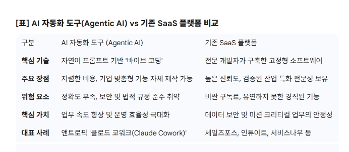 실제로 샌디에이고의 IT 기업 '그로워크는 최근 프로젝트 관리 도구인 '아사나(Asana)' 등 기존 유료 소프트웨어 구독을 해지했다. 대신 앤트로픽의 '클로드 코드'를 활용해 필요한 기능을 내부에서 직접 구현함으로써 연간 5만 달러(약 7300만 원)의 비용을 절감했다. 기업들이 비싼 구독료를 내는 대신 AI로 '가내수공업형 소프트웨어'를 제작하기 시작하면서 1조 2000억 달러(약 1750조 원) 규모의 글로벌 소프트웨어 시장이 잠식될 것이라는 공포가 현실화하고 있다.