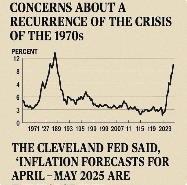 클리블랜드 연은 "2025년 4~5월 인플레이션 예상치 사상 최악"