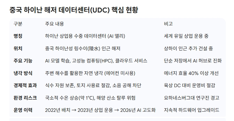하이난 해저 데이터센터, 단순 저장 넘어 고밀도 AI 컴퓨팅 허브로 탈바꿈