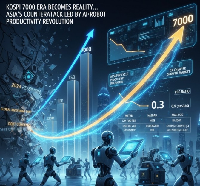 한국 증시는 2025년 2분기를 기점으로 경기 저점을 통과했다는 평가가 지배적이다. 특히 반도체 산업이 단순한 업황 회복을 넘어 'AI 슈퍼사이클'에 진입하며 삼성전자와 SK하이닉스 등 대형주가 시장 상승을 이끌고 있다. 이에 글로벌 시장에서 가장 매력적인 '가성비' 투자처로 꼽힌다. 지난해 0.13이라는 기록적인 수치를 보인 주가수익성장비율(PEG)은 현재 주가 상승을 반영해 0.3~0.4 수준으로 소폭 올랐으나, 여전히 미국 나스닥(0.9~1.1)의 절반 이하에 불과하다. 이익이 오르는 속도를 주가가 다 따라잡지 못했다는 분석이 나오는 이유다.