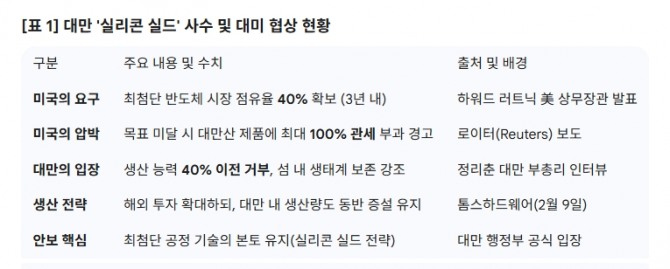 하지만 업계에서는 미국 내 공장 건설에 최소 3년이 걸리는 점을 고려할 때, 3년 내 점유율 40% 확보는 물리적으로 불가능하다는 지적이 나온다. 대만 당국은 TSMC의 가장 앞선 기술이 대만에 남아 있는 한 해외 확장은 문제가 없다는 입장을 고수하며 안보와 경제 실리를 동시에 챙기겠다는 구상을 드러냈다.