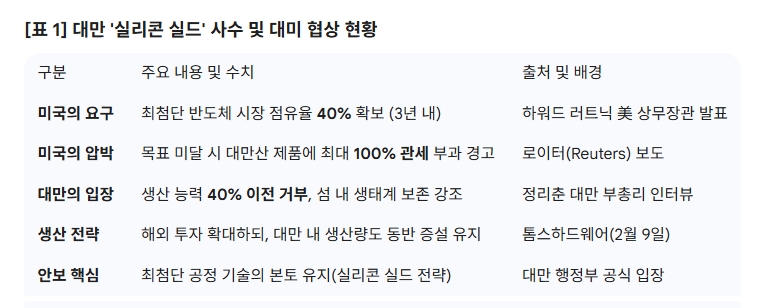 이러한 단호한 태도는 하워드 러트닉 미국 상무장관의 압박에 대한 정면 대응이다. 러트닉 장관은 최근 “전 세계 반도체 생산이 중국 인근에 집중된 것은 심각한 전략적 취약점”이라며, 트럼프 행정부 종료 시점까지 미국의 최첨단 반도체 시장 점유율을 40%로 끌어올리겠다고 선언했다. 그는 목표 달성에 실패할 경우 대만산 제품에 최대 100%의 관세를 부과할 수 있다고 경고했다.