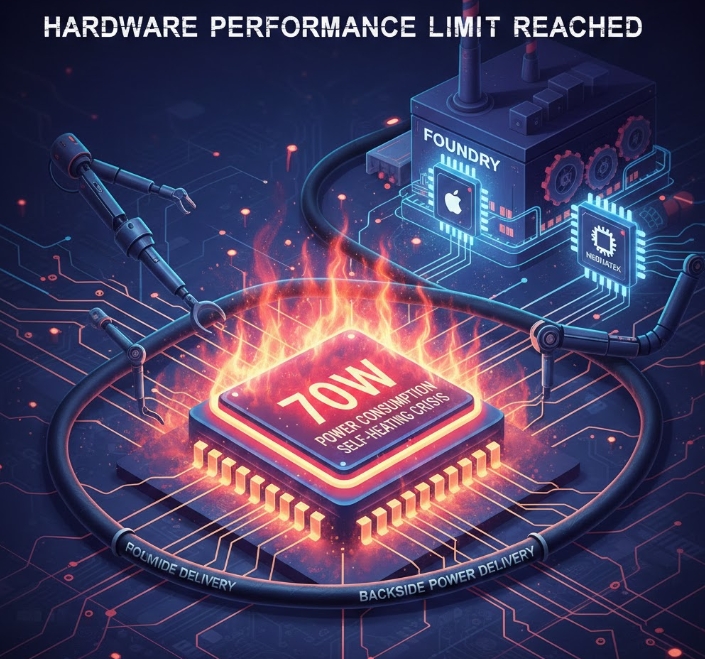 그러나 이 기술은 치명적인 부작용을 안고 있다. 전원선이 뒷면으로 옮겨가면서 칩 내부의 열이 밖으로 빠져나가는 길을 막아버려, 칩이 스스로 열을 내는 ‘자기 발열’ 효과를 극대화하기 때문이다. 반도체 설계 전문가들은 1.4나노 공정이 성공하려면 단순히 회로를 세밀하게 그리는 기술을 넘어, 칩 내부에서 발생하는 열을 어떻게 효율적으로 제어하느냐에 사활이 걸렸다고 보고 있다.