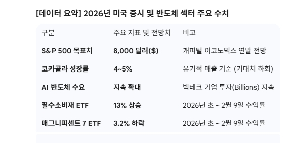 증시 전문가들은 지정학적 불안 요인에도 불구하고 미국 기업들의 실적 성장세가 꺾이지 않을 것으로 본다. 매튜스 책임자는 이러한 강력한 수익 성장을 근거로 S&P 500 지수가 2026년 말에는 8000선에 이를 것이라는 공격적인 전망을 내놨다. 결국 코카콜라와 같은 필수소비재 주식은 기술주가 주춤할 때 잠시 빛을 발하는 ‘조연’에 머물 가능성이 크다. 다시 기술주가 시장의 조명을 독점하기 시작하면, 성장이 정체된 전통 산업주들은 다시 변두리로 밀려날 처지에 놓였다.