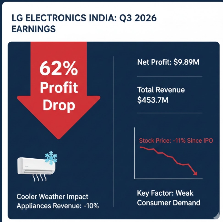 지난해 10월 인도 증시에 야심 차게 상장했던 LG전자 인도법인의 주가는 실적 쇼크 여파로 전날보다 1.5% 하락했다. 현재 주가는 공모가 대비 약 11% 낮은 수준이다.