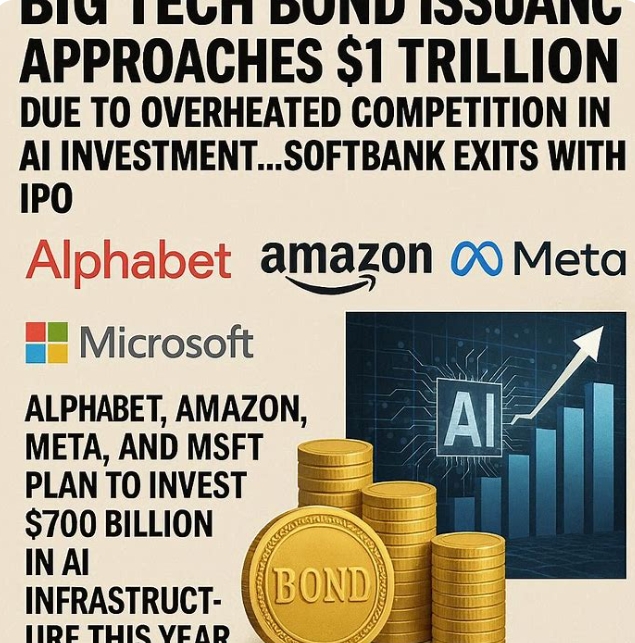 CNBC와 블룸버그통신은 12(현지시각) UBS 추정치를 인용해 지난해 7100억 달러(1024조 원)였던 글로벌 기술·AI 관련 채권 발행 규모가 올해 9900억 달러(1428조 원)로 급증할 것으로 전망했다고 보도했다. 모건스탠리는 AI 인프라 구축을 위한 자금 수요가 15000억 달러(2163조 원)에 이를 것으로 내다봤다.