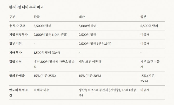 한국, 대만보다 불리하지 않은 조건 확보했지만 추가 투자 압박