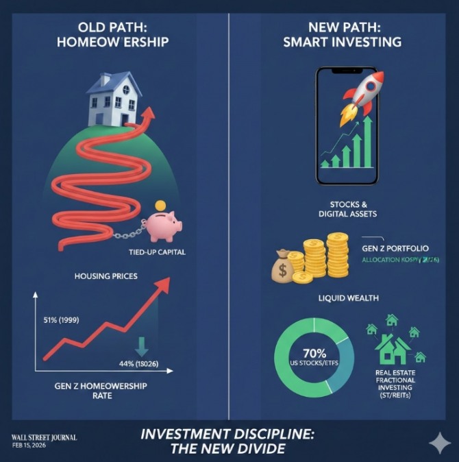 이미지 확대보기월스트리트저널(WSJ)은 15일(현지시각) 보도에서 주택 가격 폭등과 고금리로 주택 구매 기회를 상실한 미국 청년층이 자금을 주식시장으로 급격히 이동시키며 자산 형성의 새로운 경로를 개척하고 있다고 분석했다. 과거 부동산이 담당했던 ‘부의 증식’ 역할이 디지털 네이티브 세대에 이르러 금융 시장으로 빠르게 전이되는 양상이다.