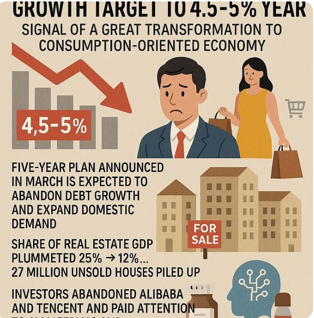 TS 롬바드의 로리 그린 중국 리서치 책임자는 "시진핑 주석이 내수를 GDP에서 더 큰 비중으로 끌어올리는 데 진심으로 나설 것"이라며 "성장률 목표를 낮추는 것은 빚을 내서 경기를 부양하던 과거 방식으로 돌아가지 않겠다는 뜻"이라고 말했다. 그는 "목표치를 조정하면 소비 지출을 늘리고 물가 하락을 막는 데 정책 역량을 집중할 수 있다"고 덧붙였다.