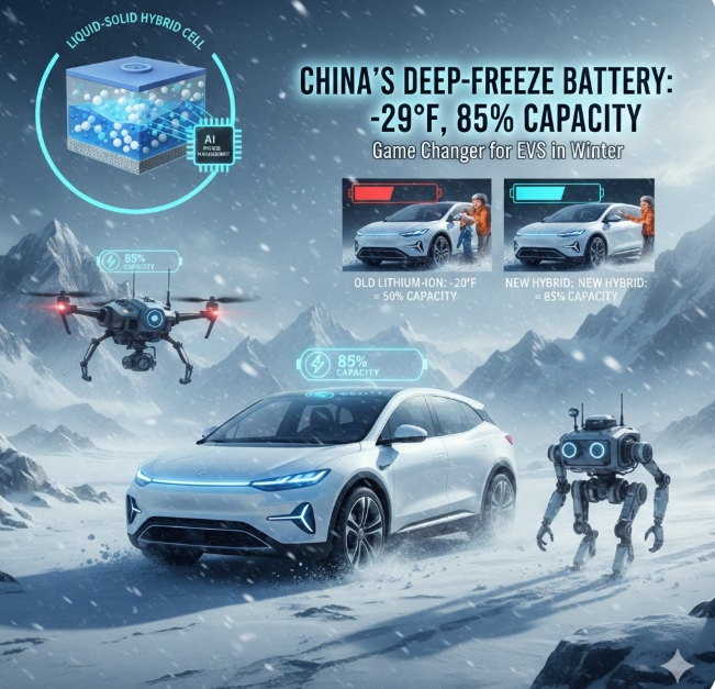 이번에 개발된 ‘액체-고체 하이브리드 리튬 배터리’는 영하 34도의 혹한 속에서 별도의 단열 장치 없이 8시간 이상 방치된 후에도 가용 용량의 85%를 유지했다.