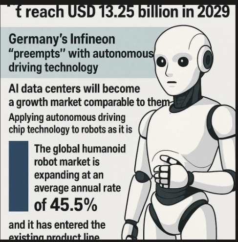 휴머노이드(인간형) 로봇에 들어가는 반도체 시장이 AI(인공지능) 데이터센터용 고성능 반도체만큼 빠르게 커질 것이라고 독일 반도체 기업 인피니언 테크놀로지스(Infineon Technologies)의 최고경영자(CEO)가 공개적으로 밝혔다고 지난 18(현지시각) 로이터 통신이 독일 경제일간지 한델스블라트(Handelsblatt)를 인용해 보도했다.