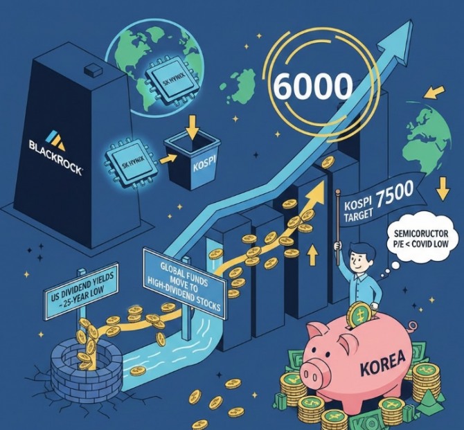 JP모건도 같은 방향을 가리킨다. JP모건은 지난 3일 코스피 기본 목표치를 5000에서 6000으로, 강세 시나리오는 7500으로 대폭 올렸다. JP모건 아시아주식전략가 믹소 다스는 "코스피 5000까지는 한국 산업과 증시 추진력만으로 충분하다"며 "지배구조 개혁과 글로벌 유동성 완화가 더해지면 6000 달성도 가능하다"고 밝혔다.