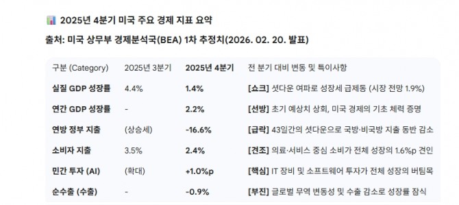 실제로 정부 지출을 제외한 최종 국내 개인 구매자 판매는 2.4% 증가하며 여전히 견고한 민간 활력을 보여주고 있다. 옥스퍼드 이코노믹스의 마이클 피어스 수석 경제학자는 "경제의 핵심은 회복력이 강하며 2026년 1분기에는 반등할 것"으로 내다봤다. 연준은 이번 성적표를 '경기 침체의 신호'보다는 '일시적 부침'으로 해석할 가능성이 크다. 따라서 시장이 기대하는 공격적인 금리 인하보다는, 1분기 반등 지표를 확인하며 신중하게 속도를 조절하는 '데이터 의존적' 태도를 당분간 유지할 것으로 보인다.