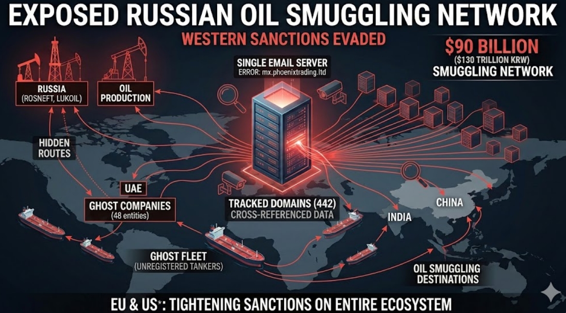 놀랍게도 이 치밀한 조직망은 ‘mx.phoenixtrading.ltd’라는 단일 이메일 서버를 공동으로 쓴 실수 탓에 무너졌다. 분석가들은 이 서버에 등록한 442개 웹 도메인을 추적해 러시아와 인도 세관 자료를 교차 검증하며 얽히고설킨 회사 관계를 짚어냈다.
