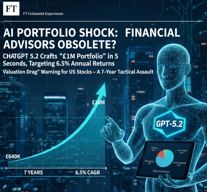 지난 20일(현지시간) 영국 파이낸셜타임스(FT)의 베테랑 칼럼니스트 스튜어트 커크는 챗GPT의 최신 모델인 '5.2' 버전을 통해 64만 파운드(약 12억 4900만 원)의 자산을 운용하는 실험을 진행했다. 결과는 경이로웠다. AI는 53세 투자자의 은퇴 시점(60세) 목표액인 100만 파운드(약 19억 5300만 원) 달성을 위해 연 6.5%의 수익률을 목표로 한 정교한 포트폴리오를 제시했다. 이는 단순히 과거 데이터를 나열하는 수준을 넘어 가치 평가(Valuation)와 리스크 관리 기법을 스스로 조정한 결과물이라는 점에서 금융권에 큰 파장을 던지고 있다.