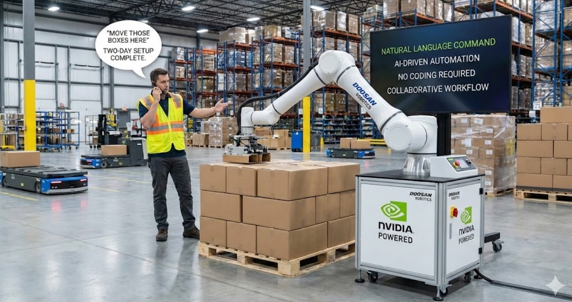 이미지 확대보기두산로보틱스(Doosan Robotics)가 엔비디아(Nvidia)와 손잡고 산업 현장의 낡은 공식을 깨는 인공지능(AI) 하역 시스템을 선보이며, 글로벌 물류 자동화 시장의 판도를 바꾸고 있다.