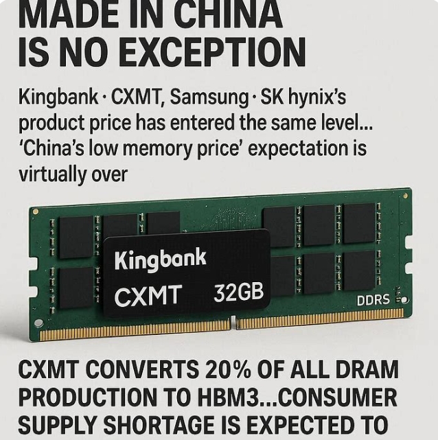 킹뱅크·CXMT, 삼성·SK하이닉스 제품 가격 동급 진입…'중국 메모리 저가' 기대 사실상 종료