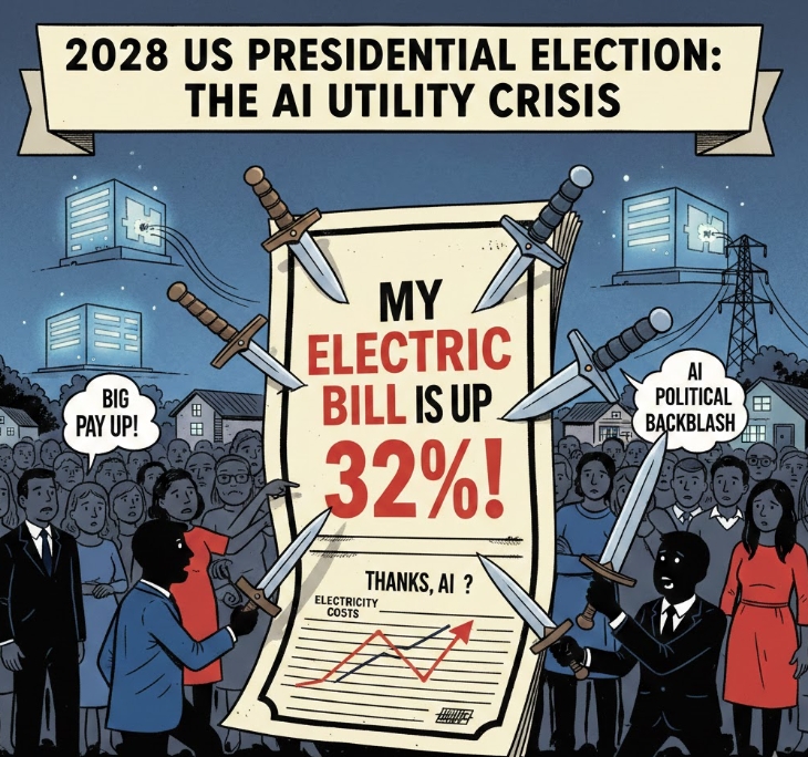 이미지 확대보기2년 전까지만 해도 "AI 유치 경쟁"에 앞다퉈 세금 감면 카드를 꺼내들었던 민주당 유력 주지사들이 이제는 "빅테크가 비용을 부담하라"고 목소리를 높이고 있다. 가계 전기요금 폭등이 유권자의 분노로 직결되면서 정치 방정식이 완전히 뒤집힌 것이다.