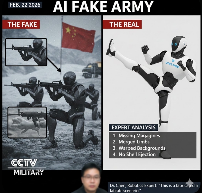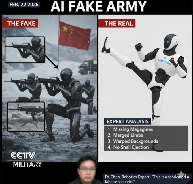 문제의 영상은 약 48초 분량으로, 설산을 배경으로 십여 대의 로봇이 소총을 들고 장애물을 통과하며 실탄 사격을 하는 장면을 담고 있다. 이 영상은 엑스(X·옛 트위터) 등에서 수백만 회의 조회수를 기록했으며, “중국이 대만 침공을 위해 1만 명 이상의 로봇 군인을 배치했다”라는 확인되지 않은 주장과 함께 전 세계로 확산했다.