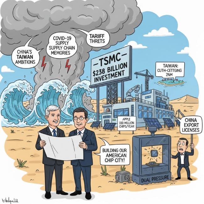 TSMC의 미국 집중 전략은 한국 반도체 산업에도 직접적인 압박으로 이어지고 있다. 미국 정부는 올해 1월부터 삼성전자와 SK하이닉스의 중국 공장에 대한 신속 수출허가(VEU) 지위를 철회, 미국산 장비 반입을 건별 승인 방식으로 전환했다. 두 회사의 중국 생산 비중이 전체의 30%에 달하는 점을 감안하면 중장기 공급망 재편이 불가피하다. 미국 상무장관은 최근 "메모리 생산 기업은 100% 관세를 내거나 미국에서 생산하라"며 한국 기업을 향해 현지 투자 압박을 노골화했다. 반도체 업계 관계자는 "TSMC와 대만이 먼저 미국 투자로 관세를 낮추는 '투자-관세 연계 모델'을 만들었고, 이제 그 틀이 한국 협상의 기준선이 됐다"고 말했다.