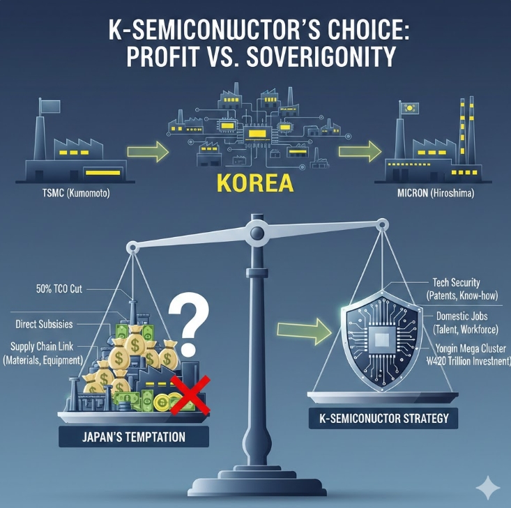 K-반도체의 결집도 부담이다. 한국 정부가 '반도체 메가 클러스터'를 통해 규제 완화와 인프라 지원을 강화하면서, 굳이 리스크를 안고 일본으로 향할 유인이 줄어들었다.