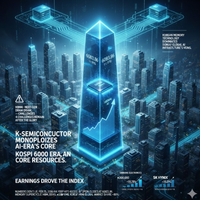 코스피 6000 돌파는 한국 반도체 기술진과 경영진이 불확실성을 뚫고 일궈낸 결실이며, 그들의 노고는 한국을 넘어 전 세계가 인정할 성취다. 이는 전 세계 AI 혁명의 토대를 한국이 쌓고 있다는 사실의 자본시장적 표현이다. 그러나 이 성취는 출발점이지 종착점이 아니다. 기술·인재·지정학·생태계 다변화라는 네 가지 방정식을 동시에 풀어내야만, 6000이 역사의 한 페이지가 아니라 8000을 향한 계단의 첫 칸으로 기록될 것이다.