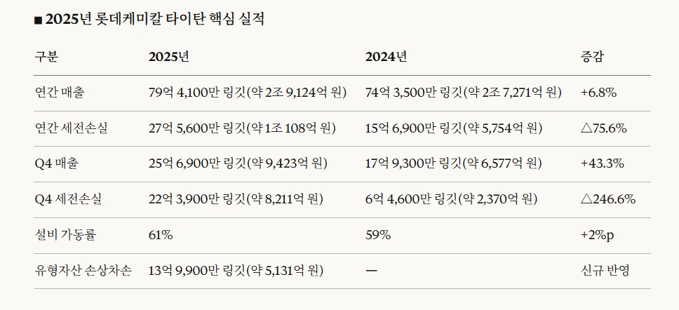 이미지 확대보기2025년 롯데케미칼 타이탄 핵심 실적과 문제점