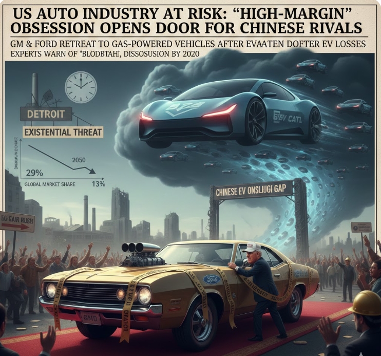 글로벌 자동차 산업 연구가인 글렌 머서는 "디트로이트 3사의 세계 시장 점유율은 2000년 29%에서 현재 13%까지 떨어졌다"며 "현 추세가 지속된다면 2050년 이전에 미국 국내 자동차 산업 자체가 소멸할 것"이라고 경고했다. 전문가들은 이 빈자리가 중국 자동차 업체들에겐 '교두보'가 될 수 있다고 본다.