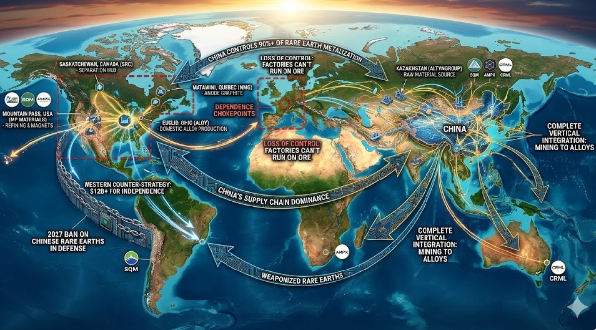 희토류 가공은 자본 집약적이고 기술 장벽이 높으며 단기 수익성이 낮아 수십 년간 서구 공급망에서 외면받아 왔다. 반면 중국은 다른 국가들이 철수할 때마다 이 분야를 전략적으로 확장했다.