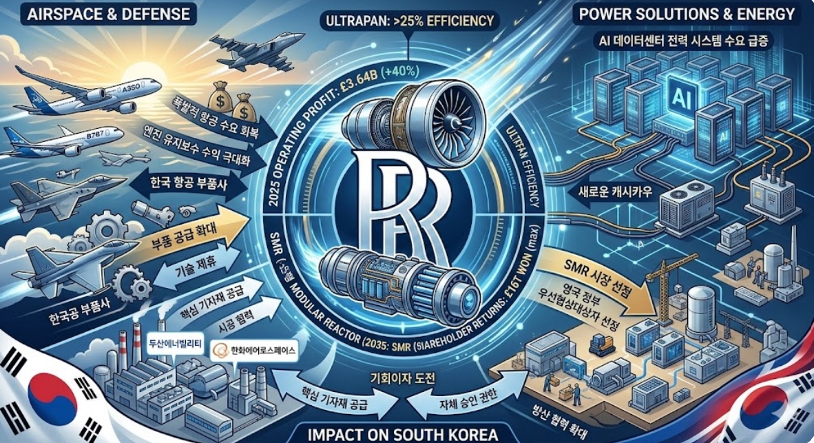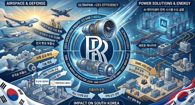 이는 전년 대비 40% 급증한 수치로, 단순한 실적 회복을 넘어 에너지와 항공우주를 아우르는 '기술 거인'으로의 체질 개선에 성공했다는 평가다. 롤스로이스의 이번 전략이 한국 원전 수출 및 항공 부품 산업에 미칠 파급력을 심층 분석했다.