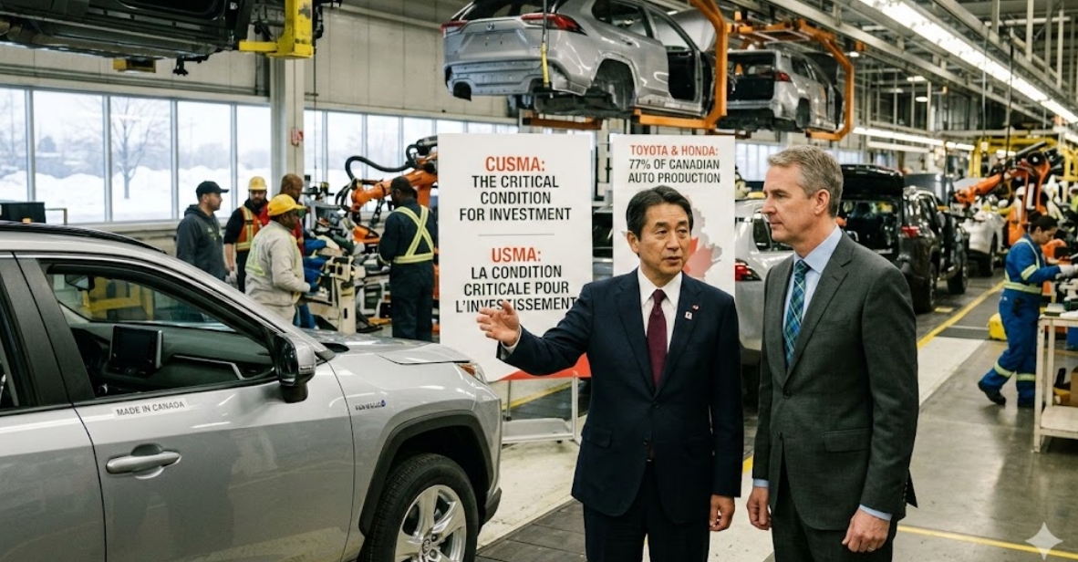 이미지 확대보기캐나다 자동차 산업의 명줄을 쥐고 있는 일본이 미국·멕시코·캐나다 무역협정(CUSMA) 재검토를 앞두고 캐나다 정부를 향해 사실상의 '최후통첩'을 보냈다.