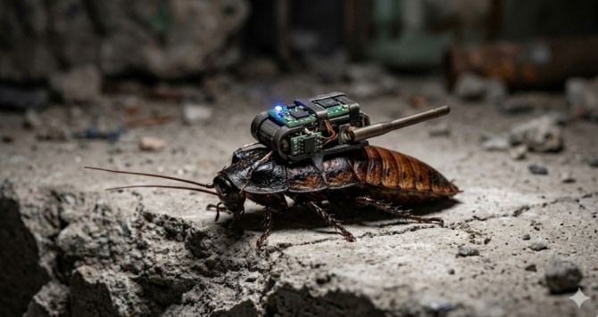나토군이 운용 중인 사이보그 바퀴벌레의 핵심은 곤충의 등에 부착된 초소형 '전자 배낭'에 있다. 이 장치에는 암호화 통신 모듈과 센서, 그리고 군집 주행을 최적화하는 AI가 탑재되어 있다.
