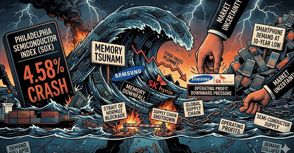 스마트폰 수요 10년 만에 최저·호르무즈 봉쇄 위기 동시 직격…삼성전자·SK하이닉스 실적 하방 압력 본격화