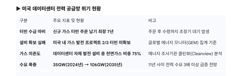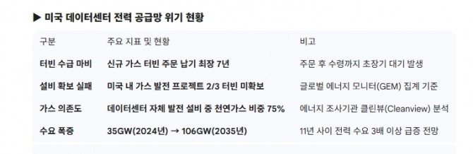기술적 결함에 대한 경고도 날카롭다. 데이터센터는 365일 24시간 중단 없는 전력 제공이 전제 조건이지만, 현재 대안으로 제시된 가스 터빈과 디젤 발전기, 왕복동 엔진은 장기 연속 가동에 최적화된 설비가 아니다.