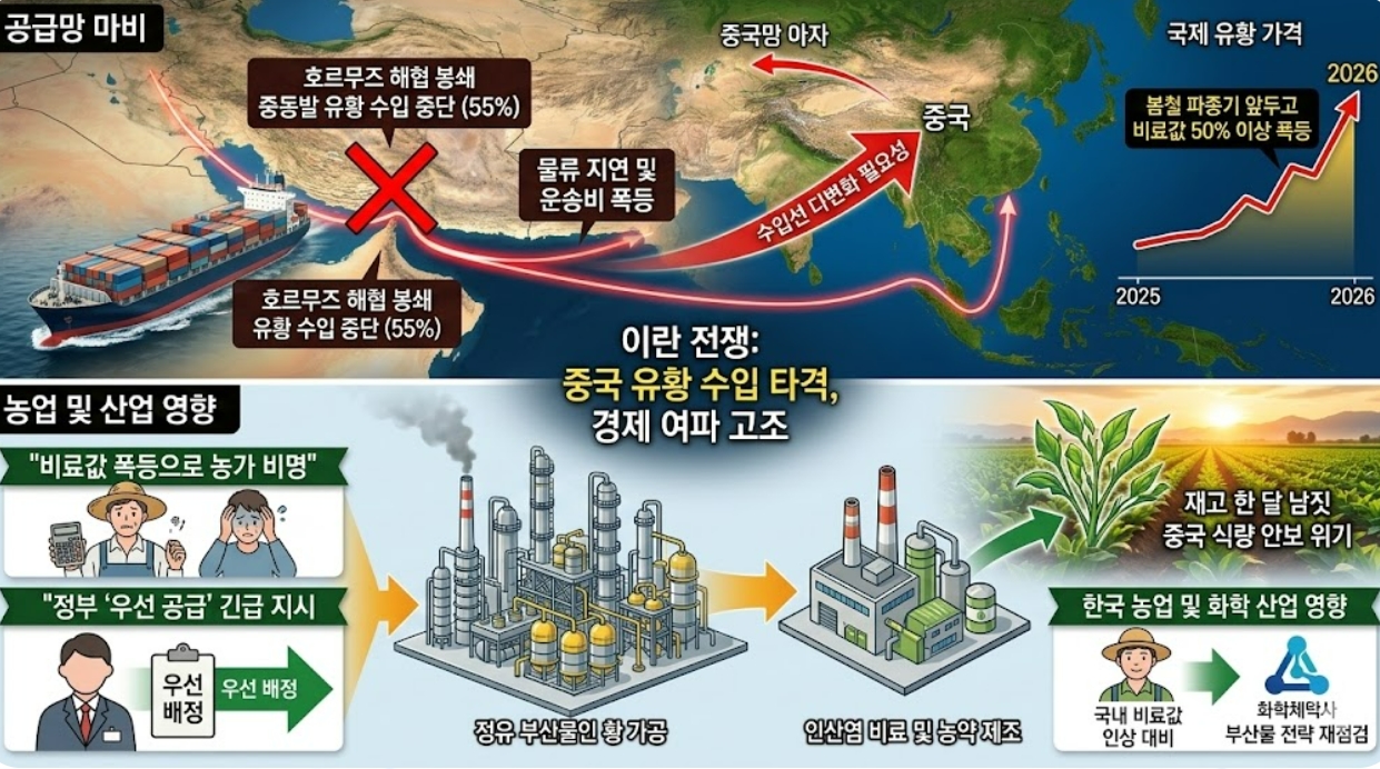 ◇ 중동 의존도 55%… 호르무즈 봉쇄에 멈춰선 비료 생산
