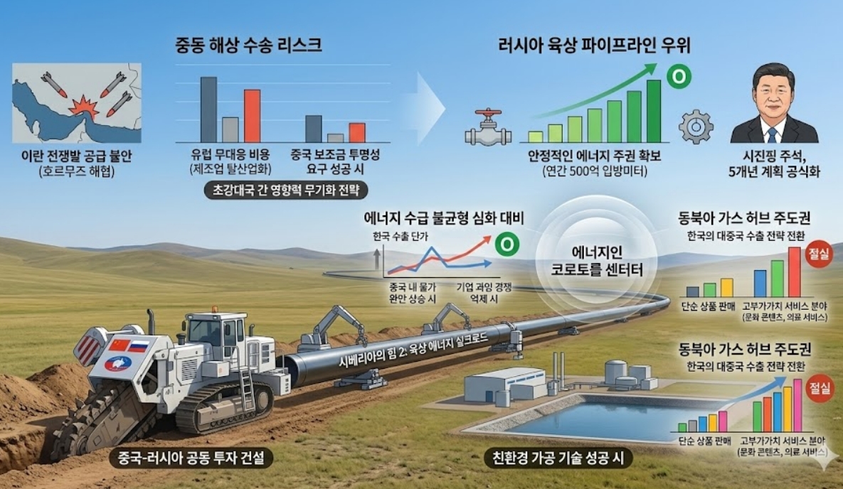이는 중동발 석유·가스 수급 불안을 대륙 간 파이프라인을 통한 ‘육상 에너지 실크로드’로 정면 돌파하겠다는 베이징의 의지로 풀이된다.